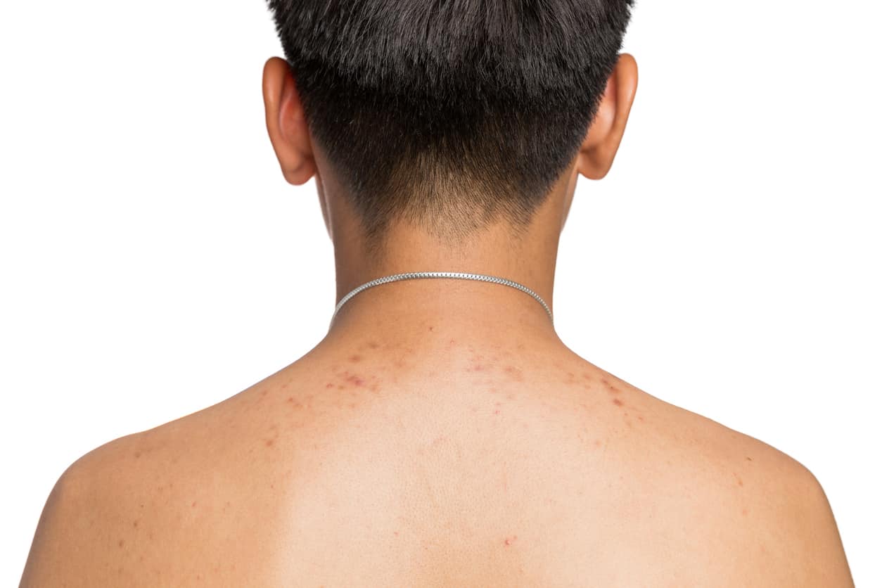 “Testosterone stimulates the sebaceous glands to produce more oil, and there are a lot of sebaceous glands on the back, particularly the upper back,” Dr. Minni explained.