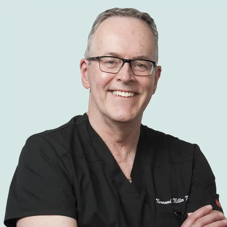 Normand Miller, MD, FACS, RPVI, RVT, is a highly experienced vascular surgeon recognized for his excellence in phlebology (diagnosis and treatment of vein diseases) and vascular surgery. With over two decades dedicated to treating venous disorders, Dr. Miller combines advanced training with a compassionate, patient-centered philosophy. His approach focuses on restoring health and confidence through individualized, minimally invasive treatments that promote lasting results and improved quality of life.