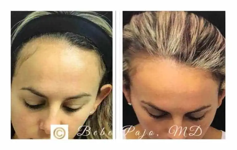 Treatments received: PRP Treatment for traction alopecia (hair loss due to wearing hair in a tight bun for many years). Patient also received a facial rejuvenation treatment.